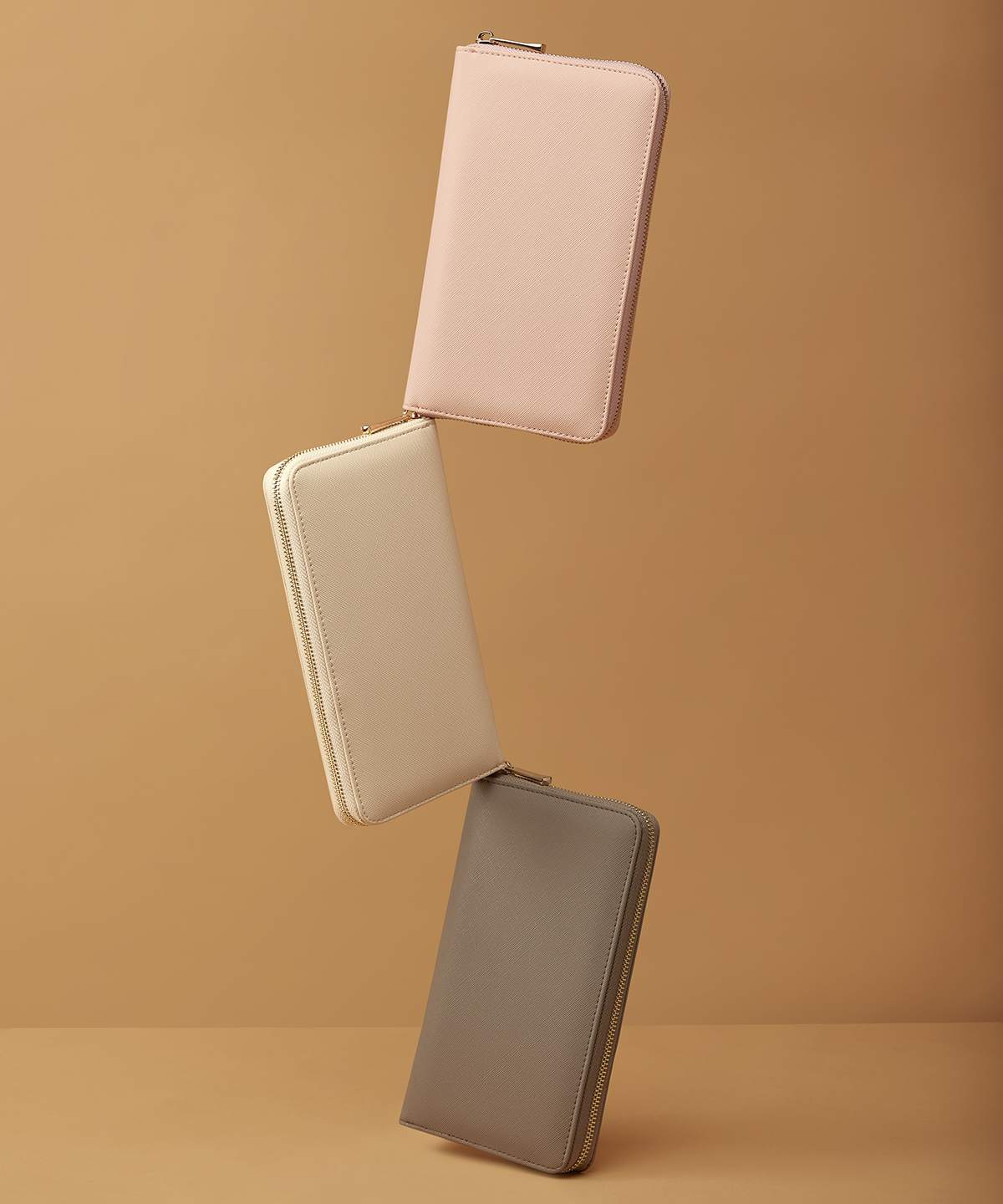 Protective velvet lining. Saffiano fine grain. Necklace compartment. Four secure necklace hooks. Detachable earring organiser. Ring holder. Two secure zip pockets. High-shine gold metal zip. Designed to store rings, earrings and necklaces.