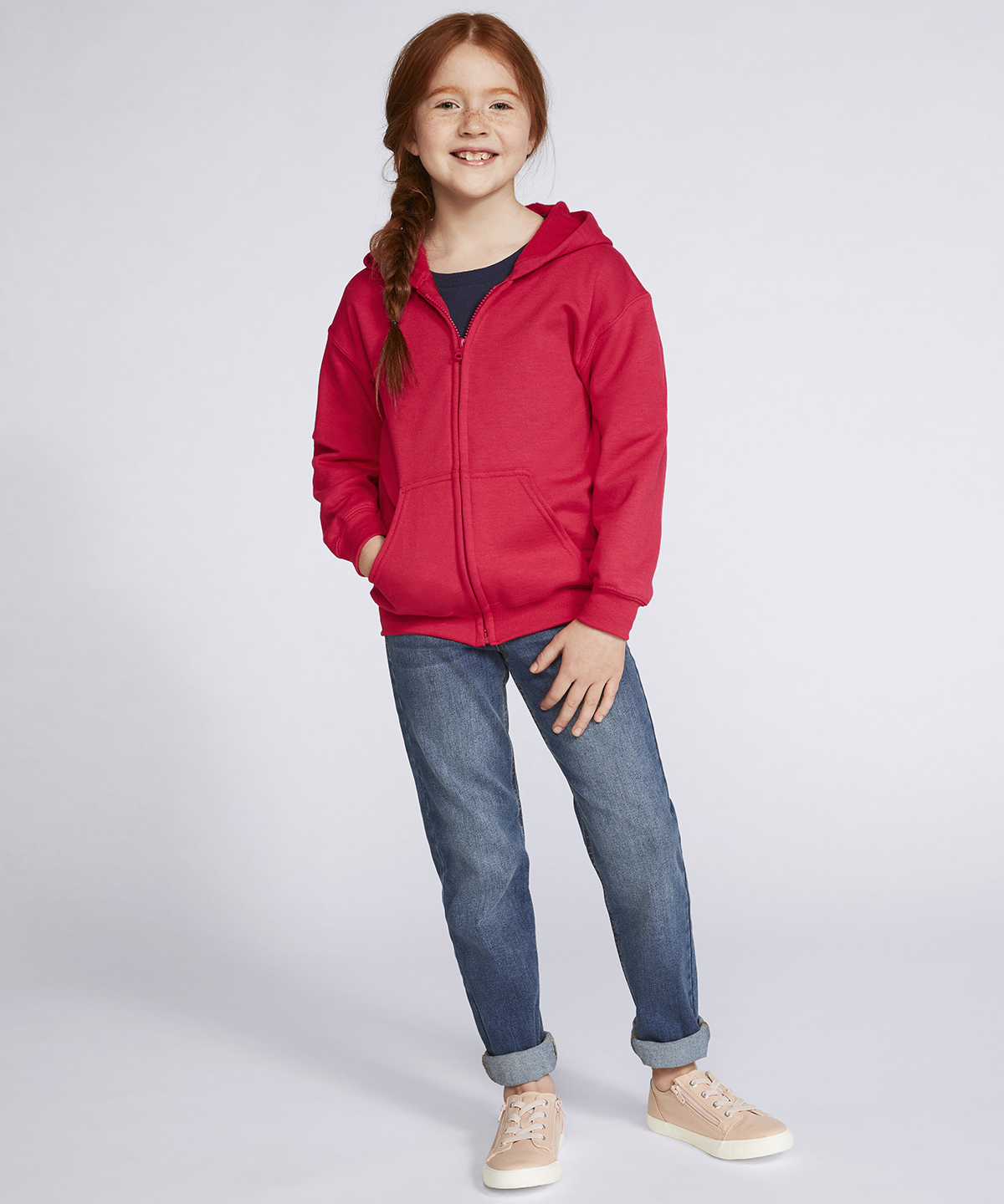 Air jet yarn which has a softer feel and reduced pilling. Tearaway label. Unlined hood with pouched pocket and nylon covered zipper for full chest printing. Twin needle stitching with set-in sleeves 1×1 rib with elastane. Quarter-turned to eliminate centre crease and no drawstring to comply with EU regulations. WRAP certified. SEDEX certified. Oeko-Tex certified. Reach certified. Fair Labour certified.